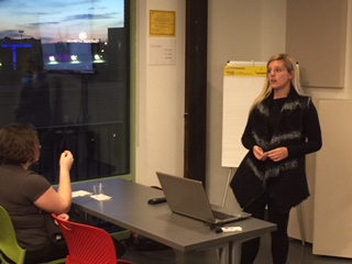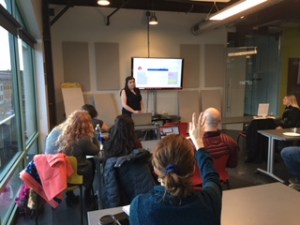 Last night, Albany Law students Alexandria Decatur and Julia Kosineski previewed a new program the students helped develop as part of their work in one of the classes I teach at Albany Law School: “The Law of Social Entrepreneurship and Exempt Organizations.” The course covers the law of non-profits and social enterprises. As part of the course, Alexandria and Julia worked in teams with other students to develop two guided interviews using the program of the Center for Computer-Assisted Legal Instruction (CALI.org), A2J Author. Last night, Alexandria and Julia presented their projects to community members in Schenectady who agreed to beta test and help with the development of the programs. It is fitting that, if one squints, one can see the General Electric sign off in the horizon behind Julia in the third photo!